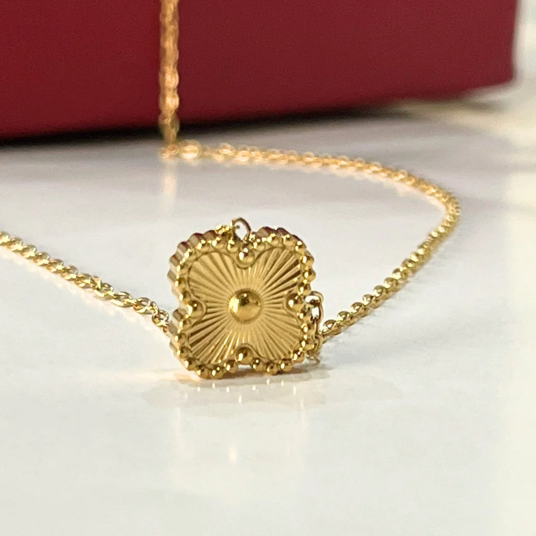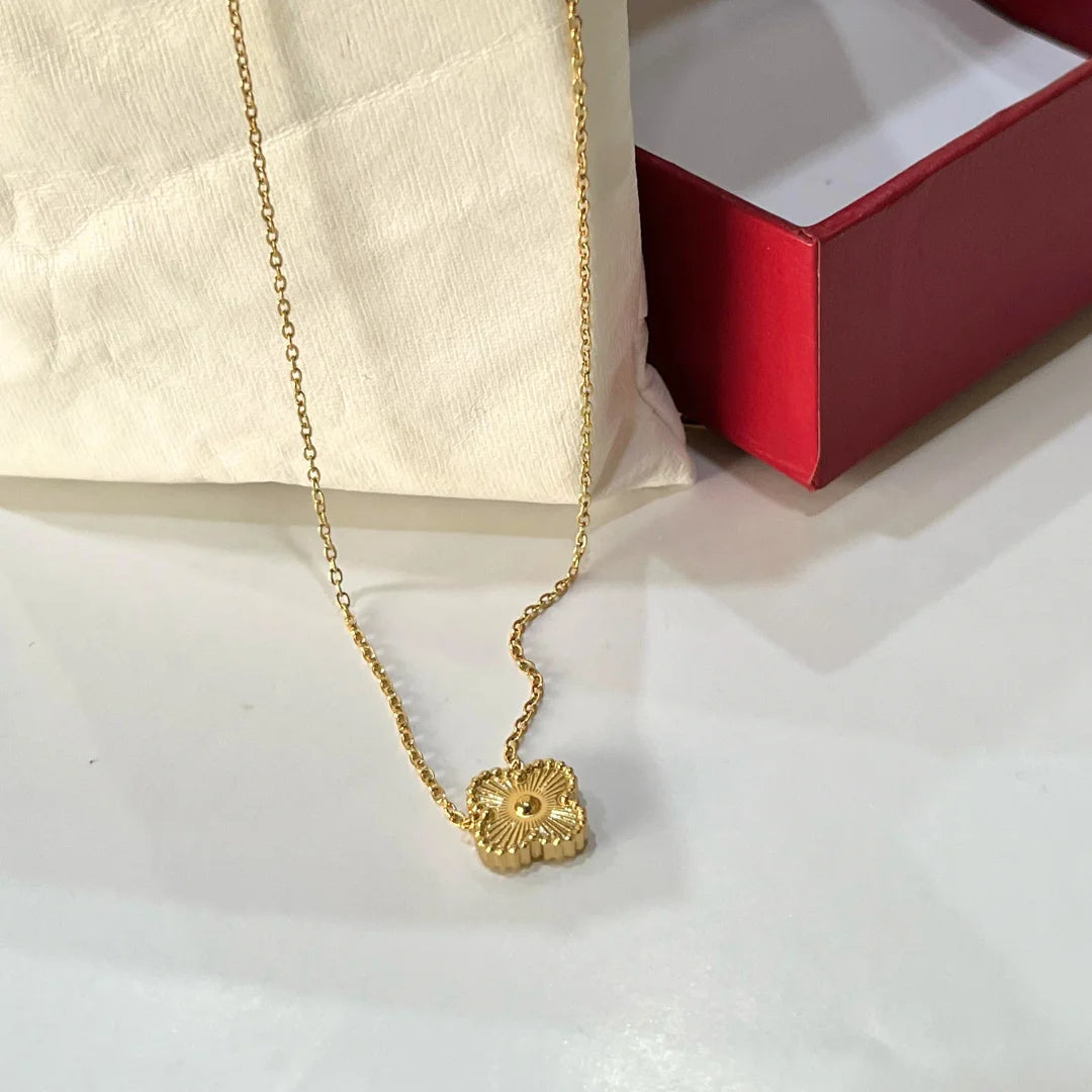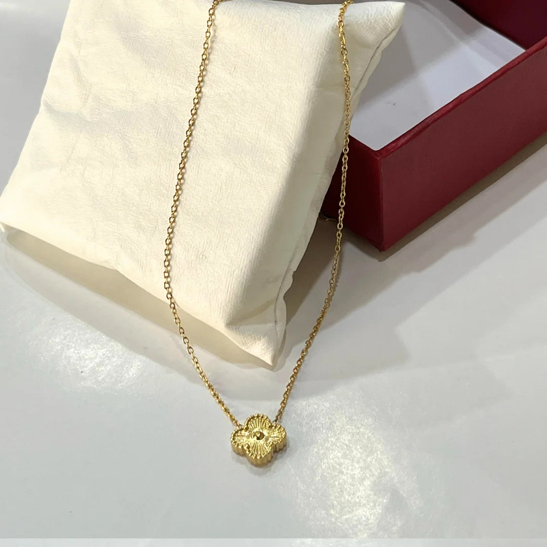 Go to the shopElevate your everyday look with the Blossom Gleam Necklace, crafted with a delicate four-leaf design in premium 18K gold-plated stainless steel.