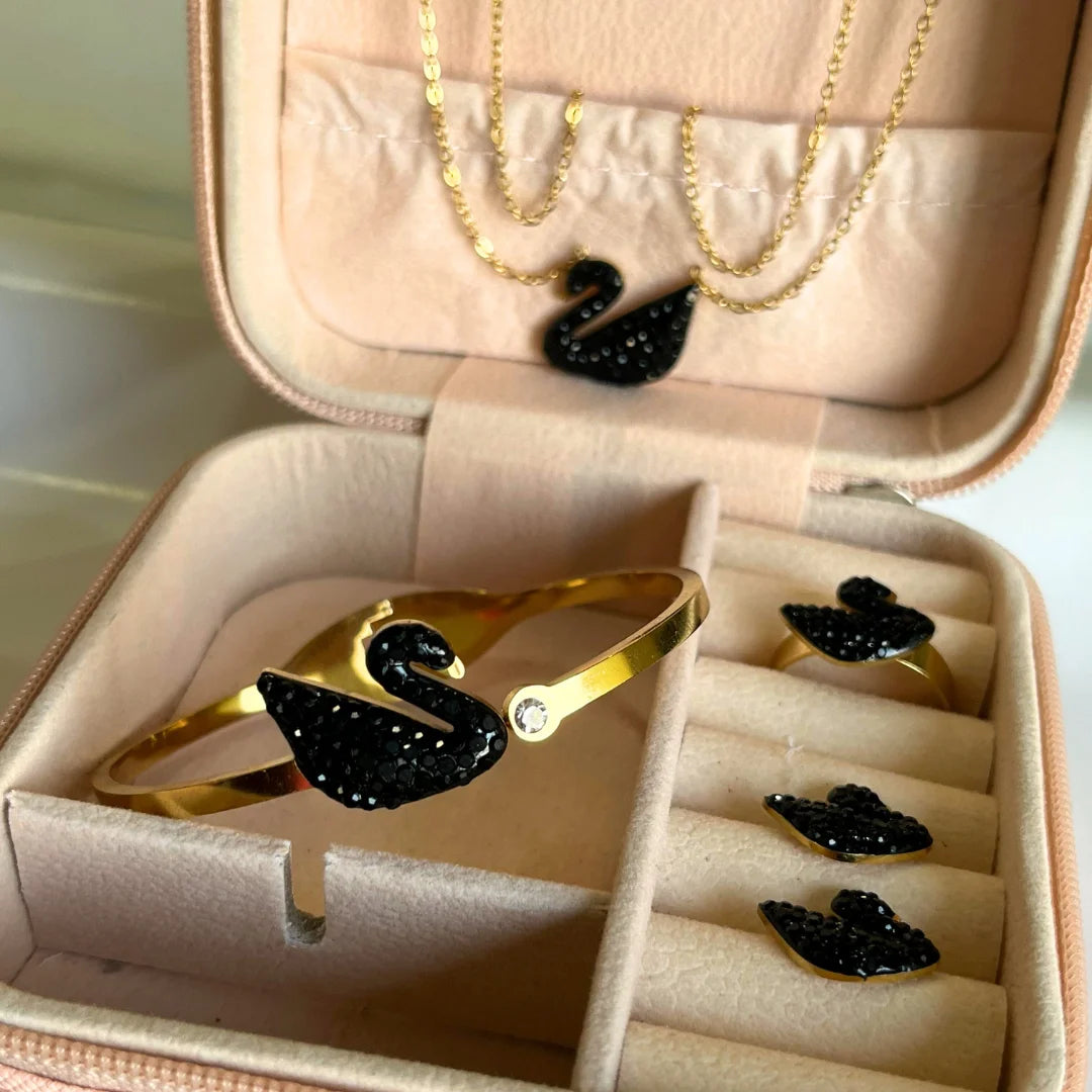 Black Swan Set - Necklace, Earrings, Handcuff & Ring Set