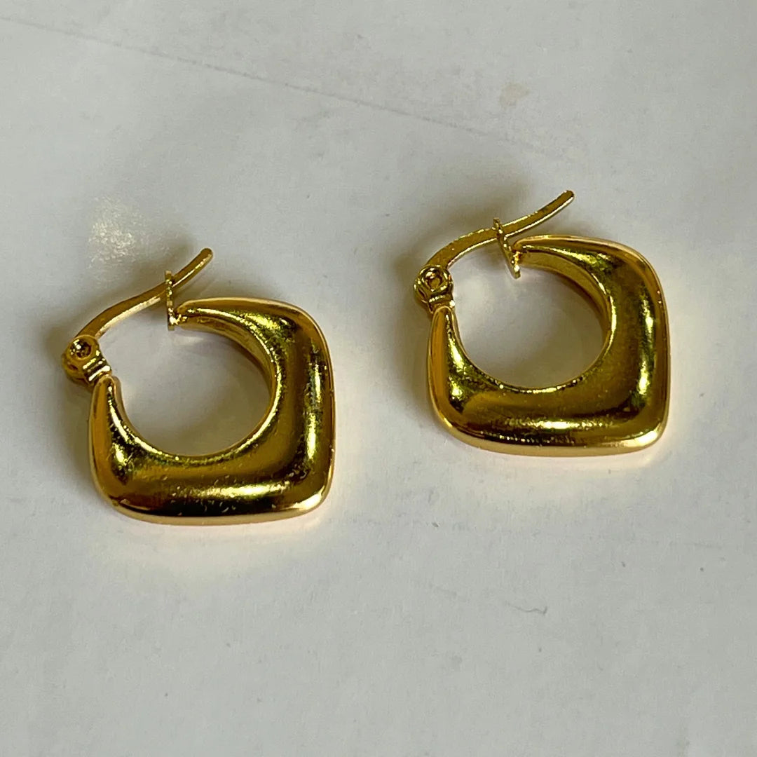 Go to the shopAdd a bold twist to your look with the Eterna Hoop Earrings. Crafted from stainless steel and finished with 18K gold plating, these waterproof, anti-tarnish hoops are made for everyday shine. Perfect for both casual and dressy outfits.
