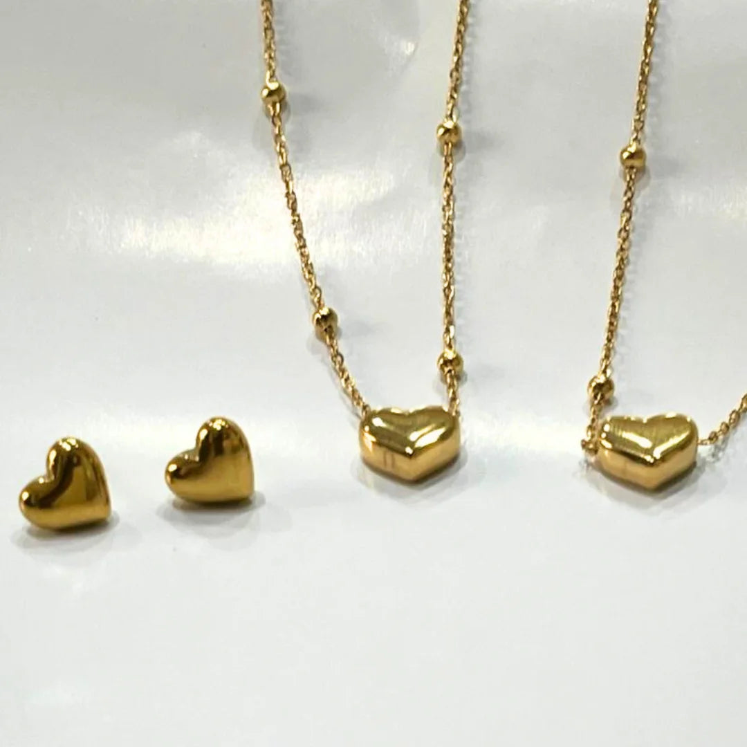 MINIMAL HEART JEWELRY SET | BEADED HEART NECKLACE GOLD PLATED | STAINLESS STEEL