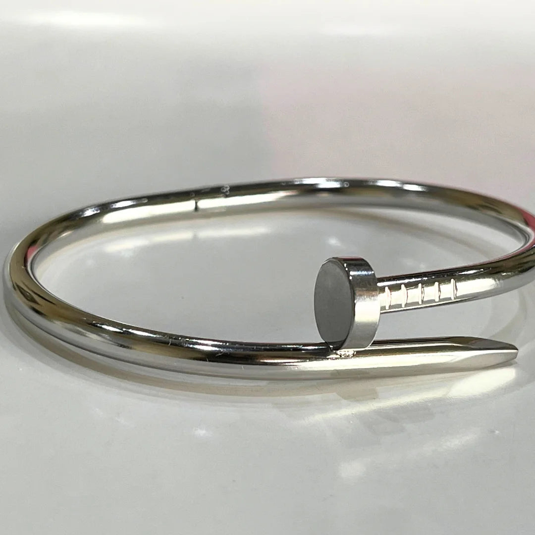 • Add elegance to your look with our silver Nail Bangle Bracelet,. This waterproof, anti-tarnish bracelet is perfect for everyday wear, offering a modern, unisex style that lasts.